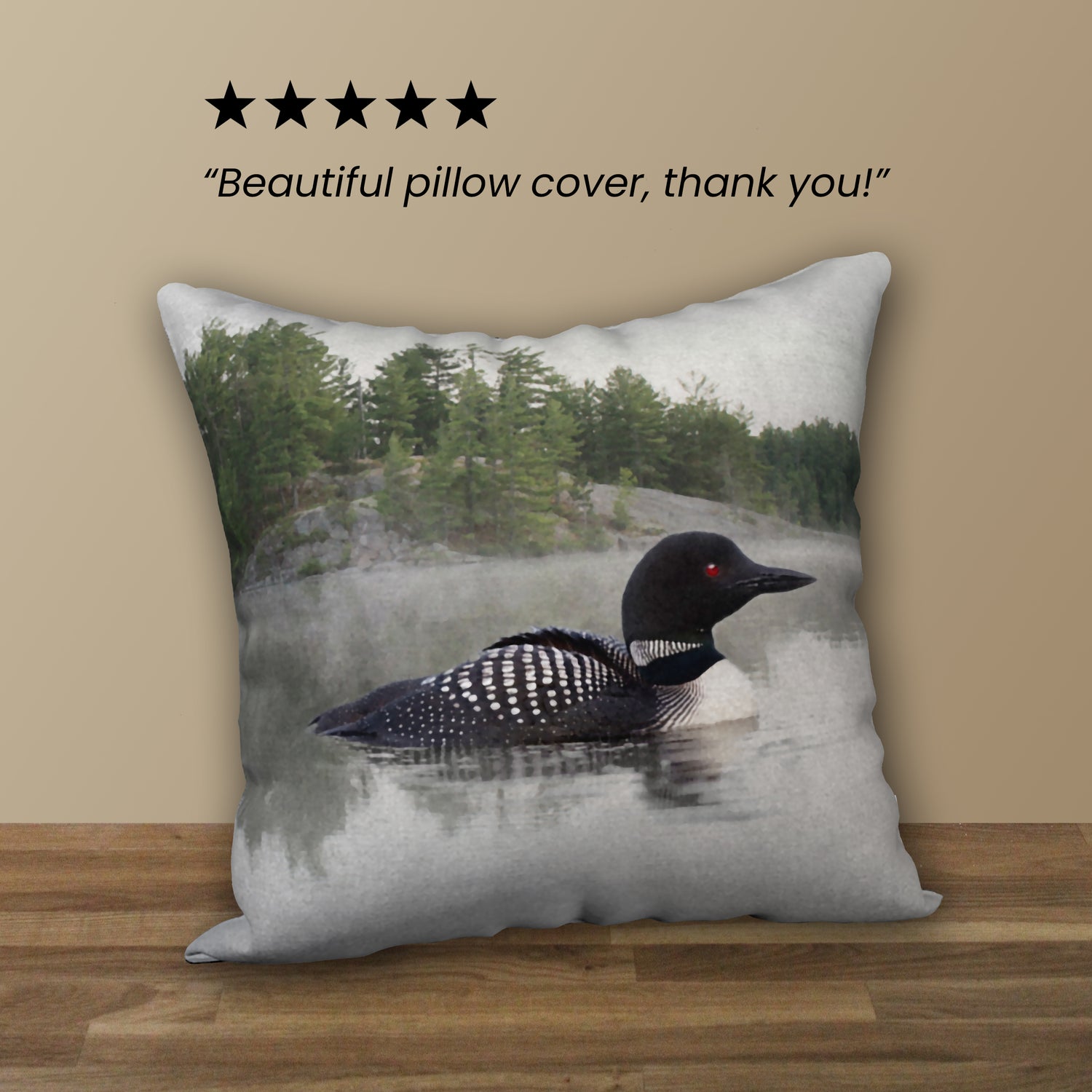 She's pleased with her new 'Loon on the Water' designer pillow cover. 🙂