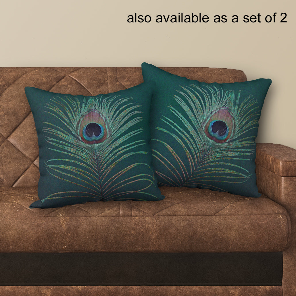 Peacock Feather Designer Pillow, 18"x18"