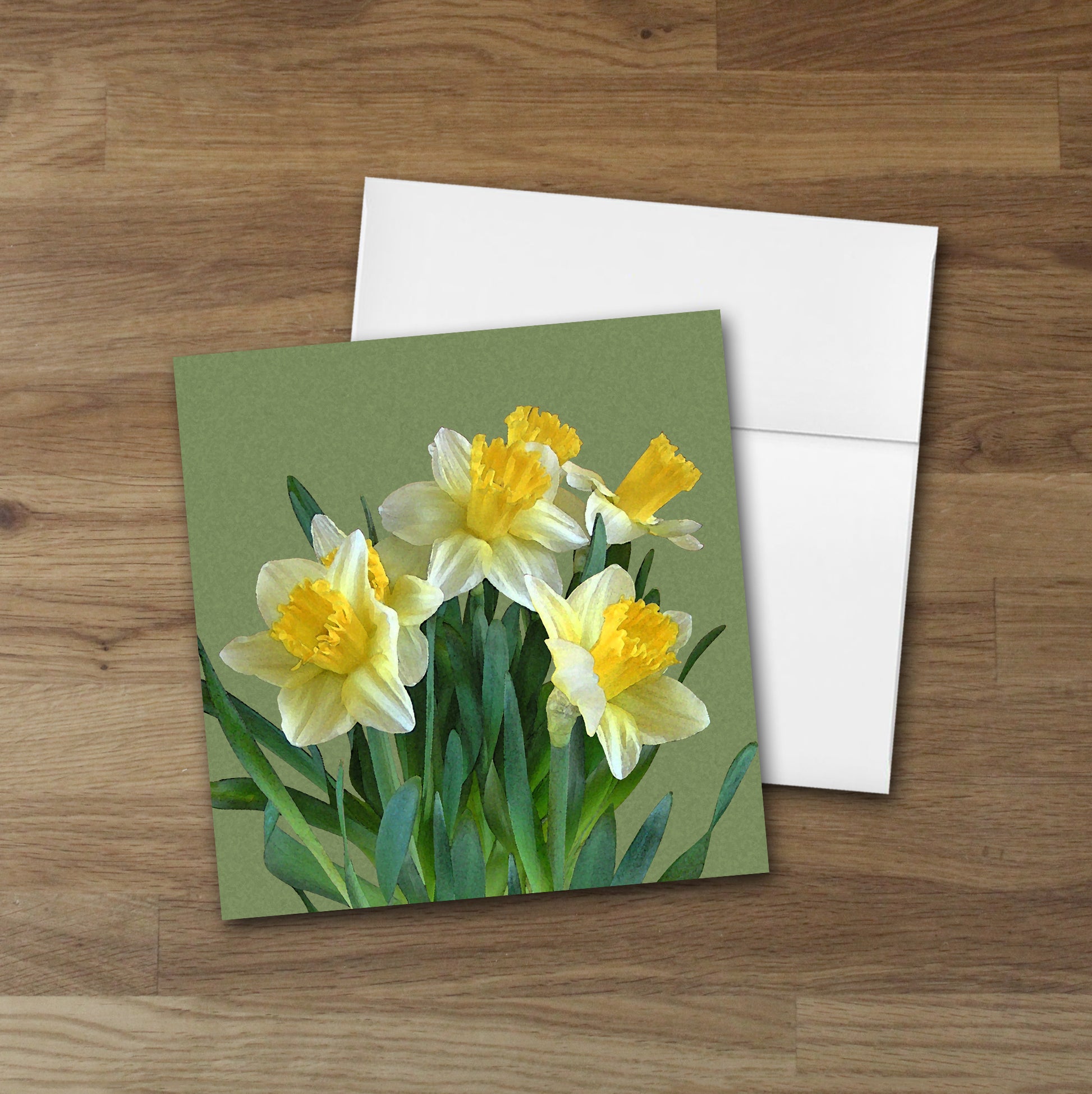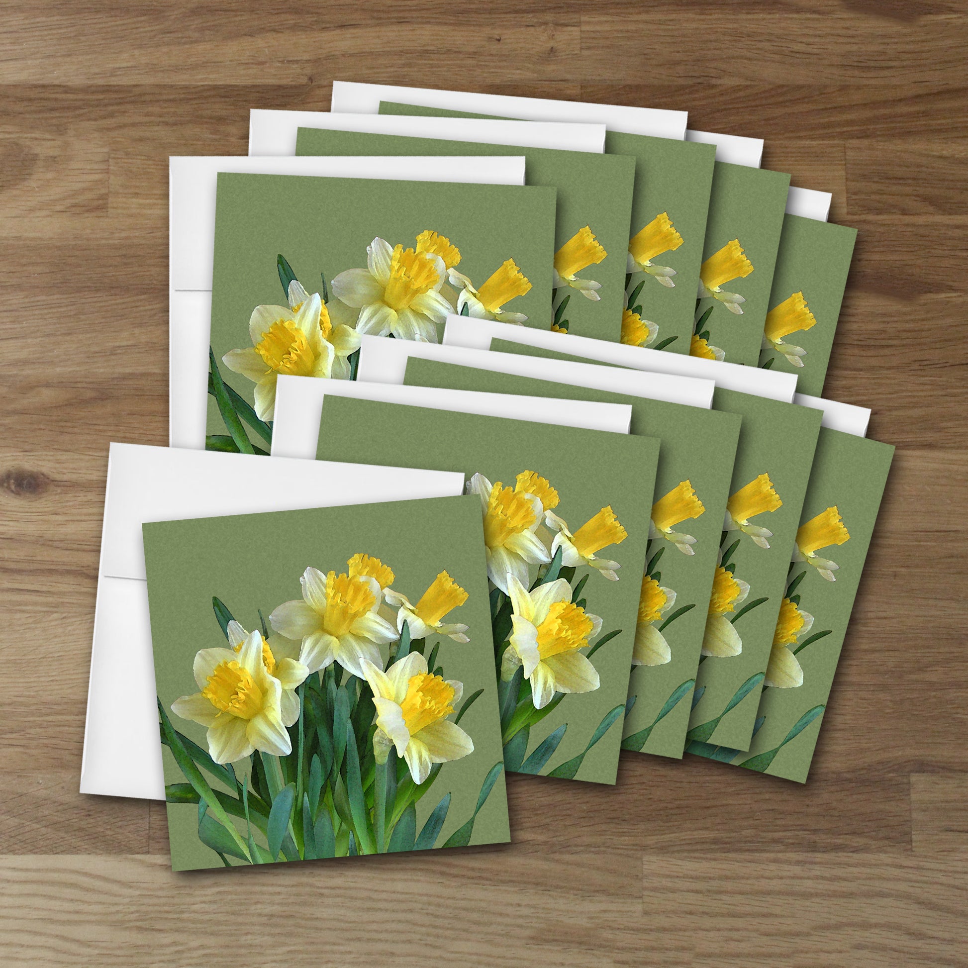 These gorgeous daffodils greeting cards are the perfect way to say Happy Birthday, Thank You, or Happy Birthday. Featuring my original art of a bunch of fresh daffodils, they will be gladly received by friends and family. Gardeners and flower lovers will especially enjoy these cards.