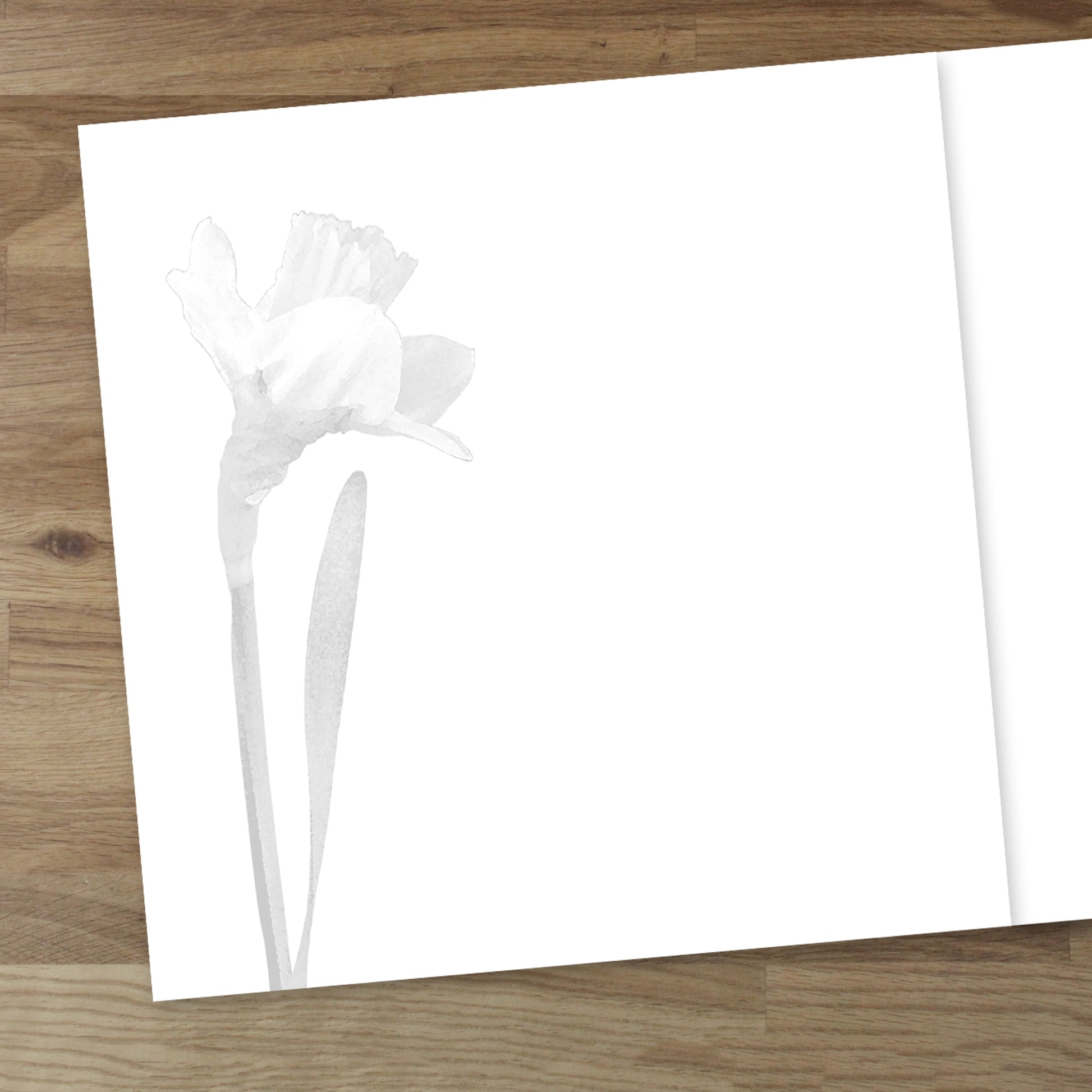 The inside of each card features a soft grey drawing of another daffodil on the left, leaving lots of space on the right to add your own personal message.