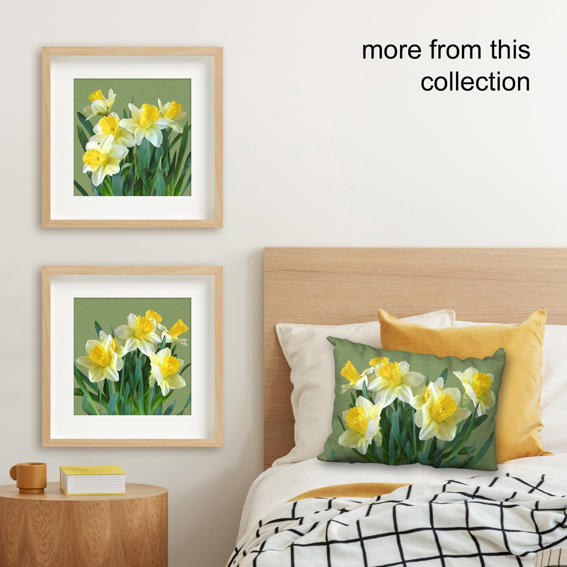 This beautiful daffodil artwork in various versions is also available as designer pillows and as unframed fine art prints. See all the choices in my Garden Flowers Collection.