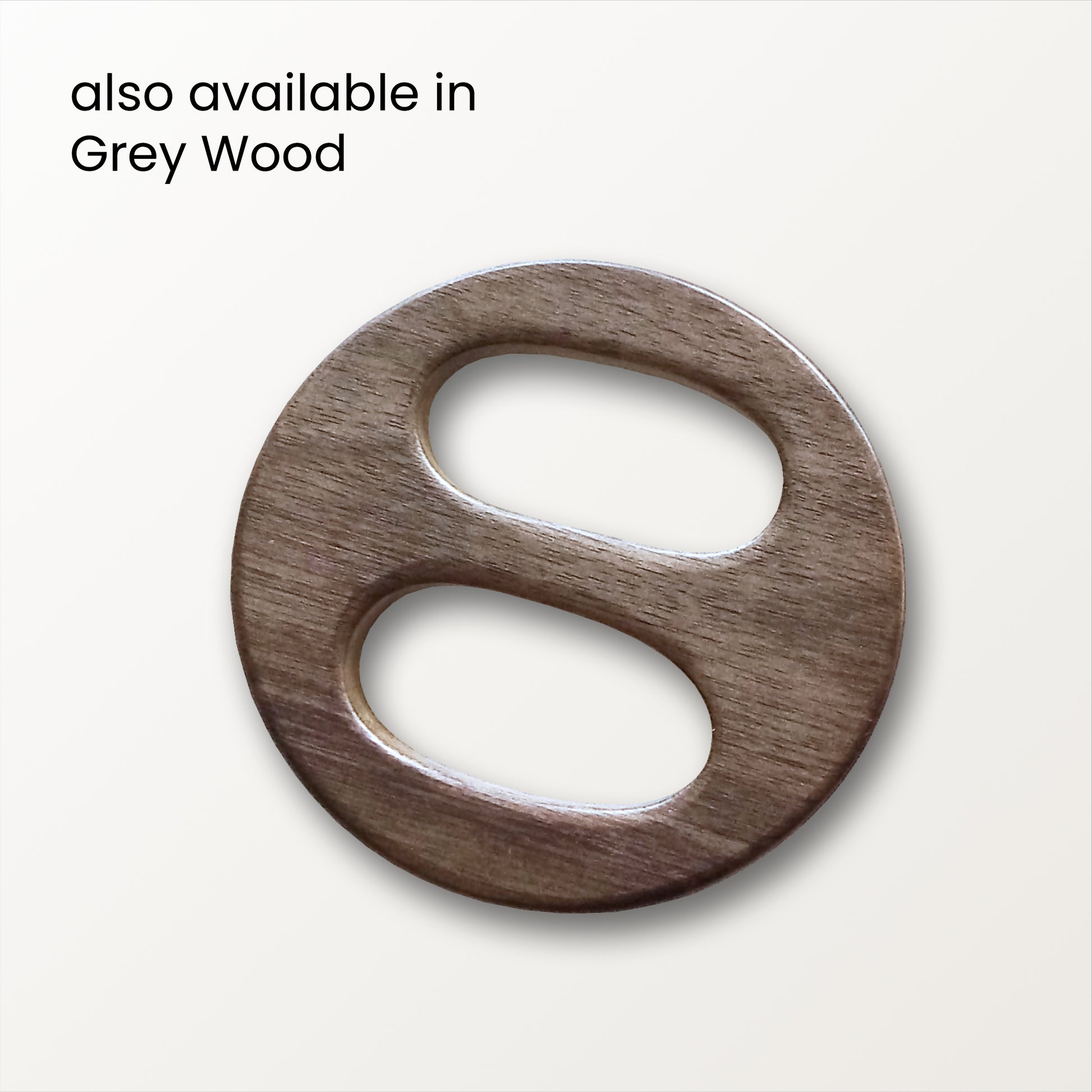 In addition to this Tiger Ebony Wood Scarf Ring, I also offer a Grey Wood Scarf Ring with a lighter neutral coloring. You'll find all the scarf rings with the Eco Scarf Collection.